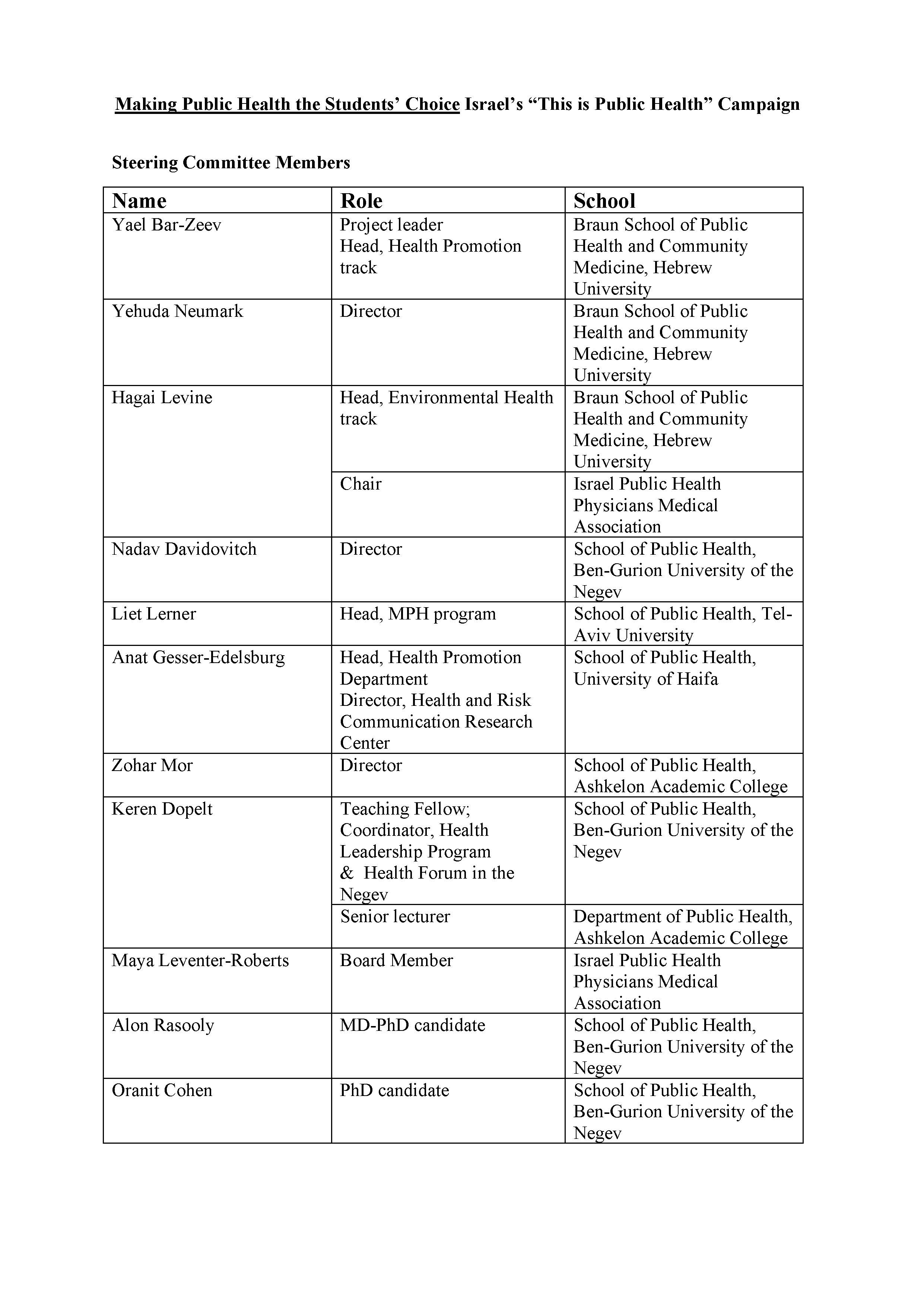 ASPHER is the key independent European organisation dedicated to strengthening the role of public health by improving education and training of public health professionals for both practice and research.Home » Aspher repository » Winners - This is Public Health-Europe campaign 2019 » Steering committee members